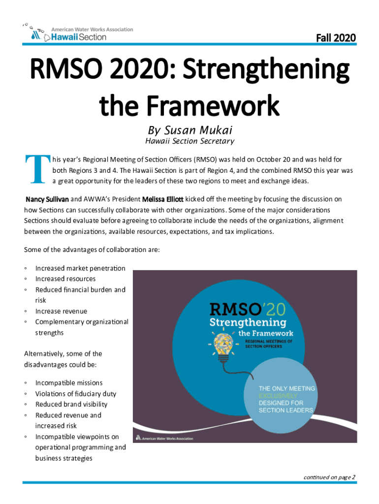 Fall 2020RMSO 2020: Strengthening the Framework By Susan MukaiTHawaii Section Secretary his years Regional Meeting of Section Officers (RMS) was held on October 20 and was held for both Regions 3