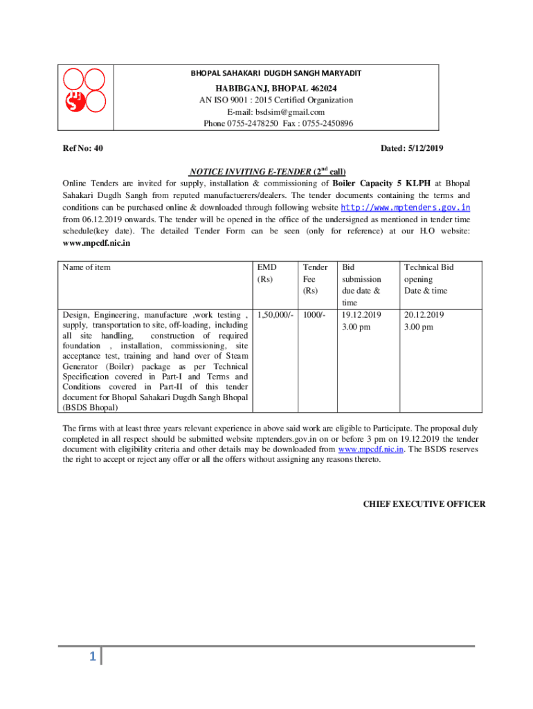 Ref No: 40Dated: 5/12/2019NOTICE INVITING