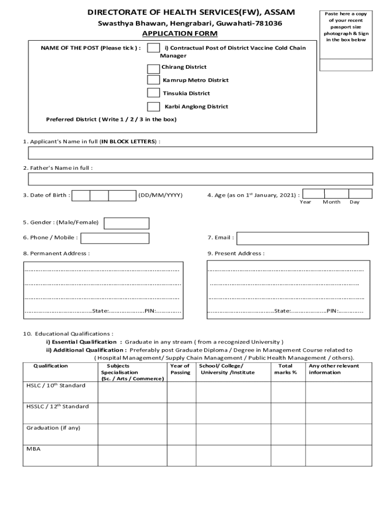 Get the free DIRECTORATE OF HEALTH SERVICES(FW), ASSAM