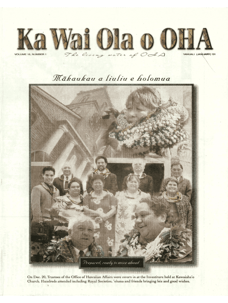 VOLUME 18. NUMBER 1a Lulu e Solomon Dec. 20, Trustees of the Office of Hawaiian Affairs were sworn in at the Investiture held at Kawabata\'o