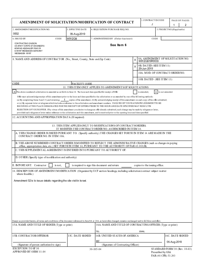 Get the free Amendment 02 is to issue details regarding the site visit in Israel