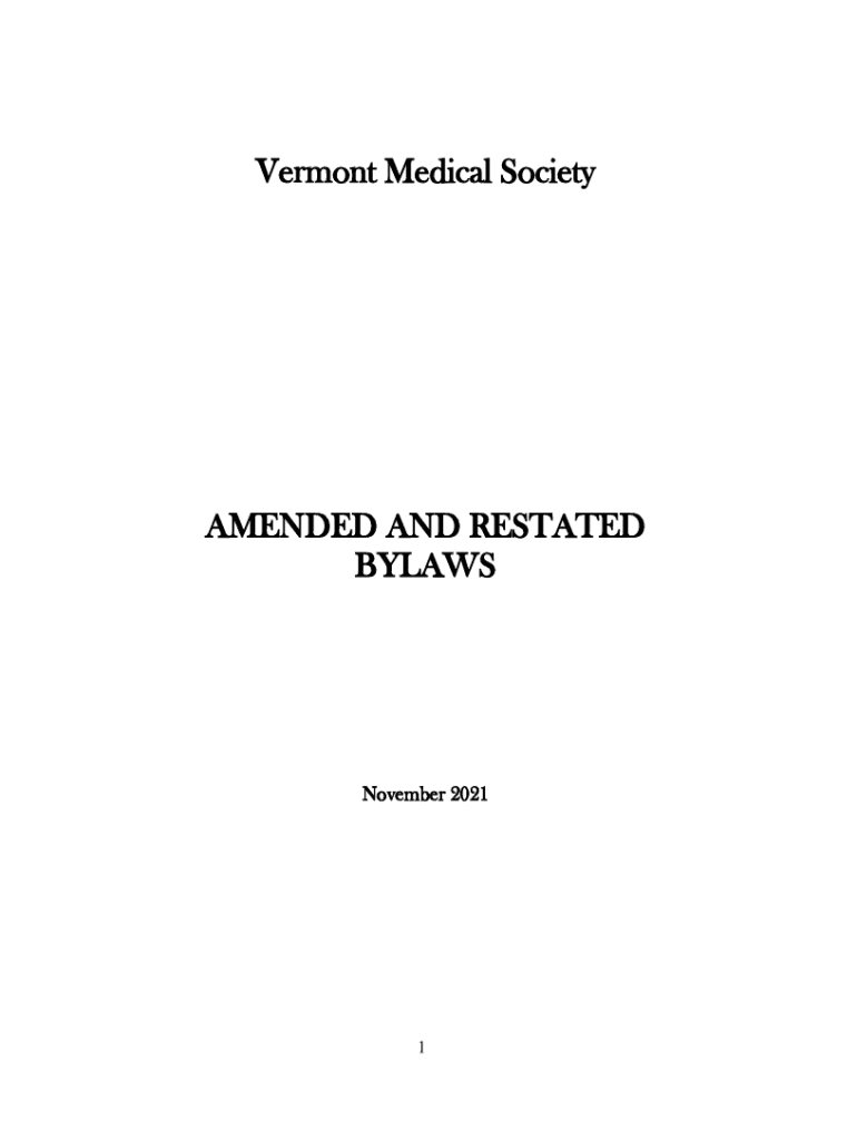 Vermont Medical SocietyAMENDED AND RESTATED BYLAWS November 20211TABLE OF CONTENTS Chapter I MEMBERSHIP Section 1, Section 2, Section 3, Section 4, Section 5 Section 6page 5 Guiding Principles Types