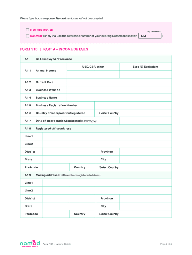 APPLICATION FORMER N1B Income Details Nomad Residence Permit Please read the document list and checklist prior to completion of this form N1B Income DetailsResidency Malta Agency Pentium Business