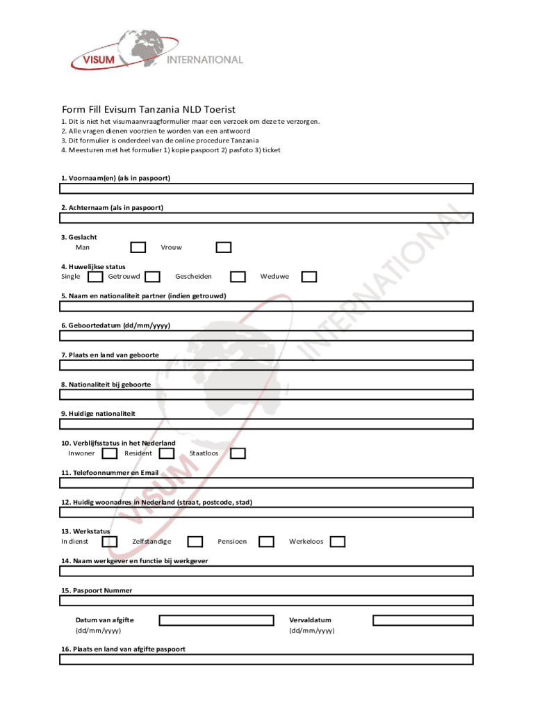 Get the free Form Fill Evisum Tanzania NLD Toerist - Visum International