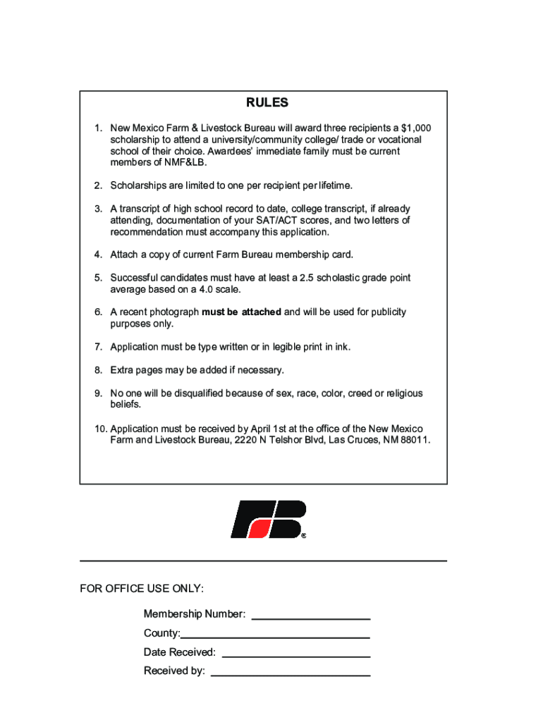1. New Mexico Farm & Livestock Bureau will award three recipients a $1,000
