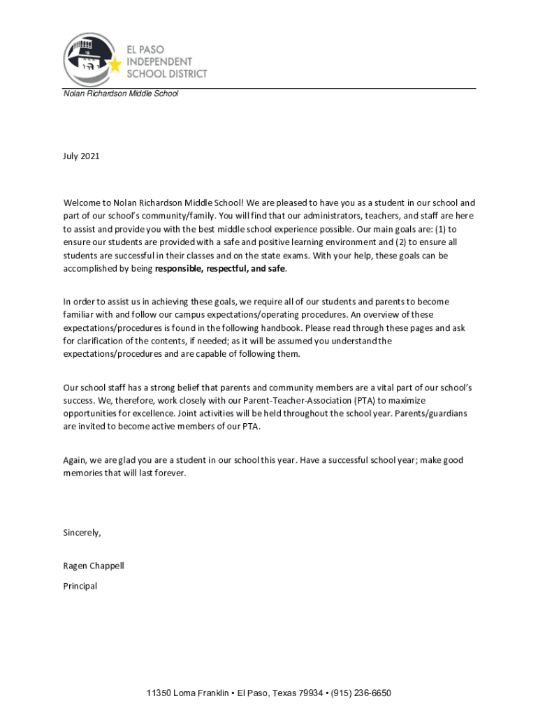Nolan Richardson Middle School July 2021Welcome to Nolan Richardson Middle School! We are pleased to have you as a student in our school and part of our schools community/family. You will find that