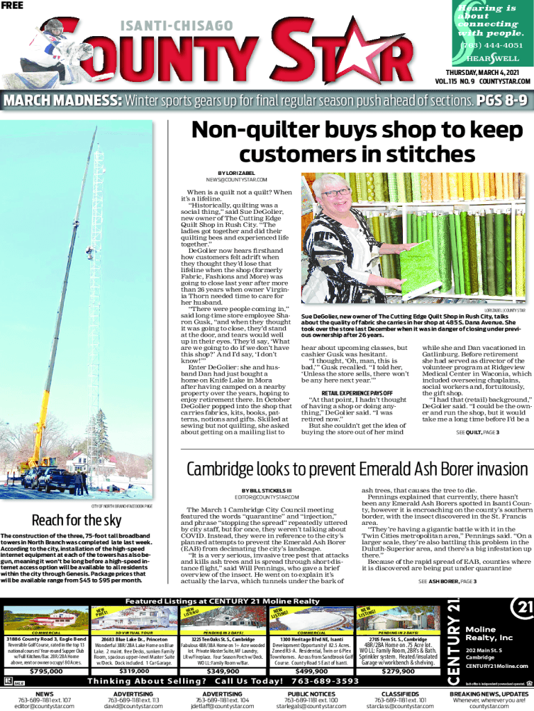 Rehearing is about connecting with people.ISANTICHISAGO(763) 4444051THURSDAY, MARCH 4, 2021, VOL. 115 NO. 9 COUNTY STAR.COMMA RCH MADNESS: Winter sports gears up for Neil regular season push ahead