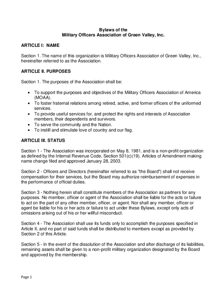 Get the free Bylaws of the Military Officers Association of Green Valley, ...