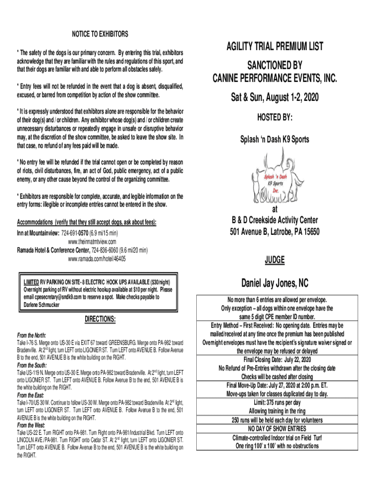 NOTICE TO EXHIBITORS * The safety of the dogs is our primary concern. By entering this trial, exhibitors acknowledge that they are familiar with the rules and regulations of this sport, and that their