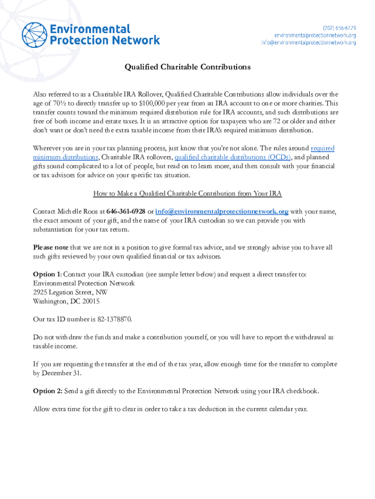 Qualified Charitable Contributions Also referred to as a Charitable IRA Rollover, Qualified Charitable Contributions allow individuals over the age of 70 to directly transfer up to $100,000 per year