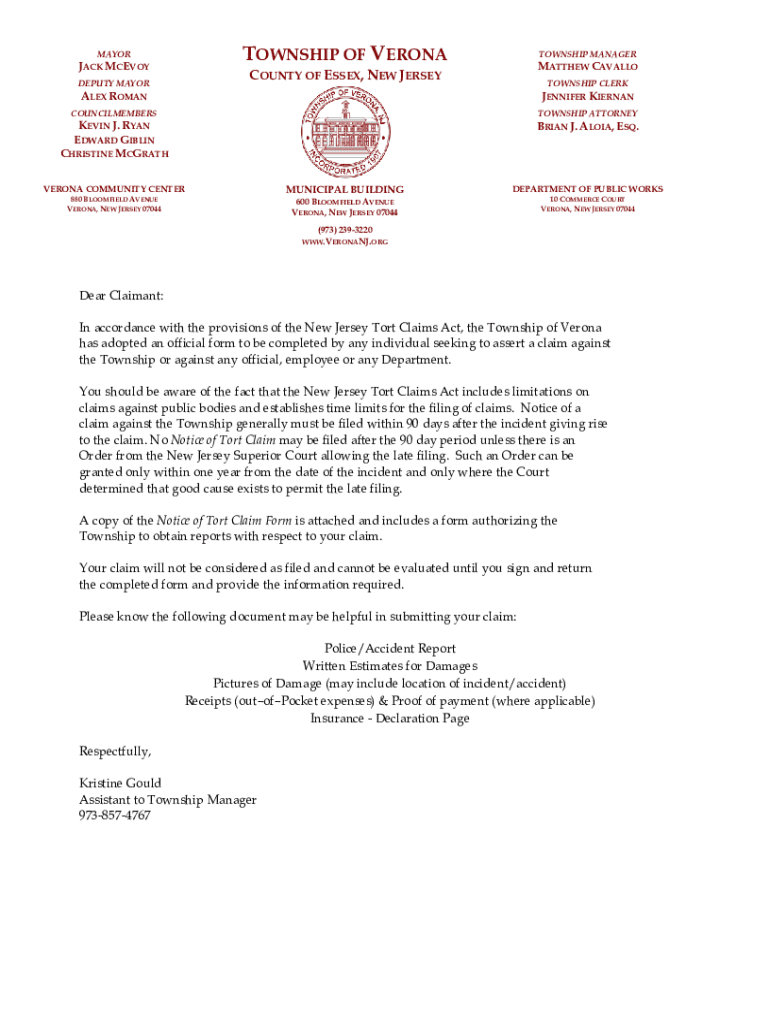 TOWNSHIP OF VERONAMAYORJACK MCEVOYTOWNSHIP MANAGERMATTHEW CAVALLOCOUNTY OF ESSEX, NEW JERSEYDEPUTY MAYOR