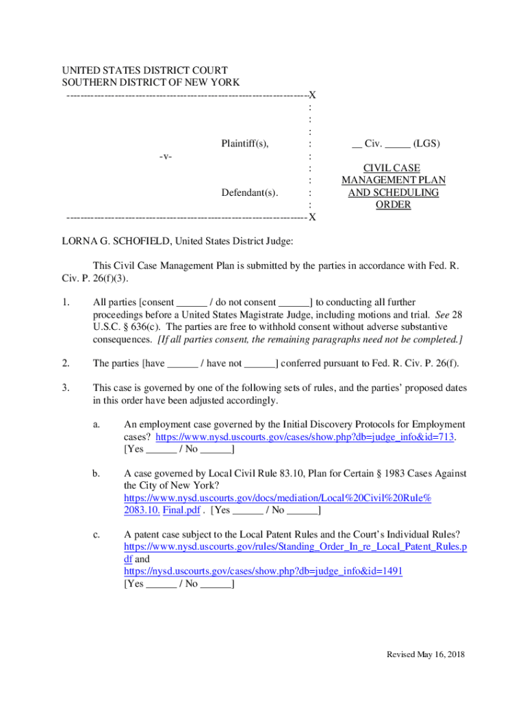 Get the free Civil Case Management Plan And Scheduling Order (Judge ... - Justia