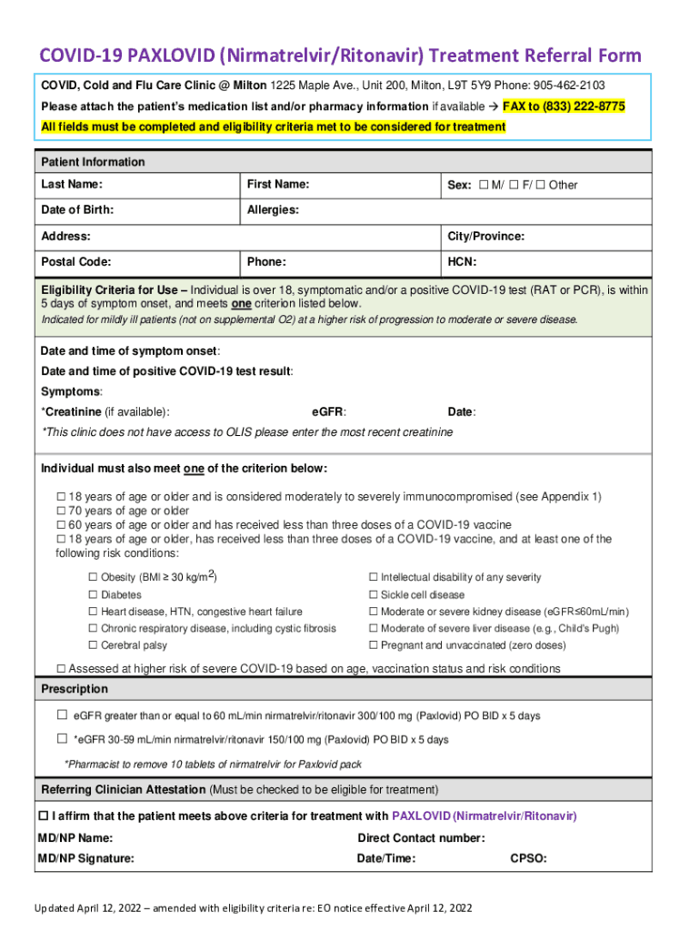 Get the free Nirmatrelvir/ (Paxlovid) Order Form for COVID + ...