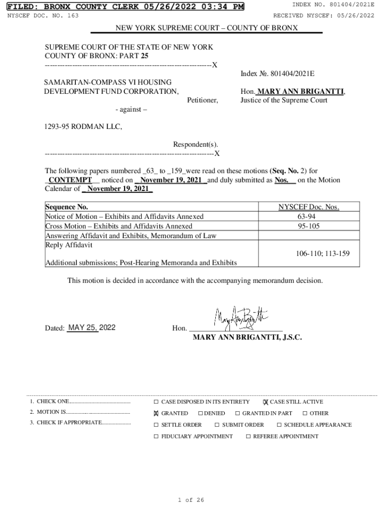 INDEX NO. 801404/2021EFILED: BRONX COUNTY CLERK 05/26/2022 03:34 PM NYSE DOC. NO. 163RECEIVED NYSE: 05/26/2022NEW YORK SUPREME COURT COUNTY OF BRONX SUPREME COURT OF THE STATE OF NEW YORK COUNTY OF