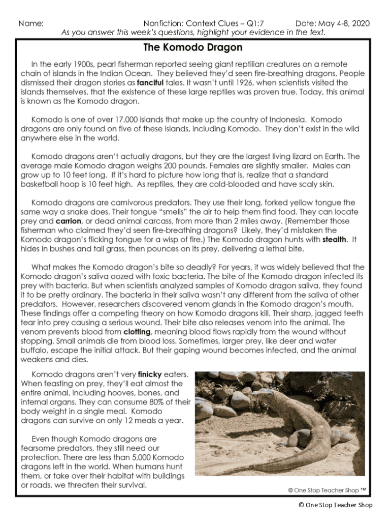If the pink gorilla eats watermelon every night, how many watermelons does he eat? Name:Nonfiction: Context Clues Q1:7 Date: May 48, 2020 As you answer this week's questions, highlight your evidence