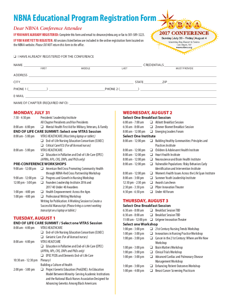 NINA Educational Program Registration Form Dear NINA Conference Attendee If you have already registered: Complete this form and email to: dmance@nbna.org or fax to 3015893223. If you have yet to register: