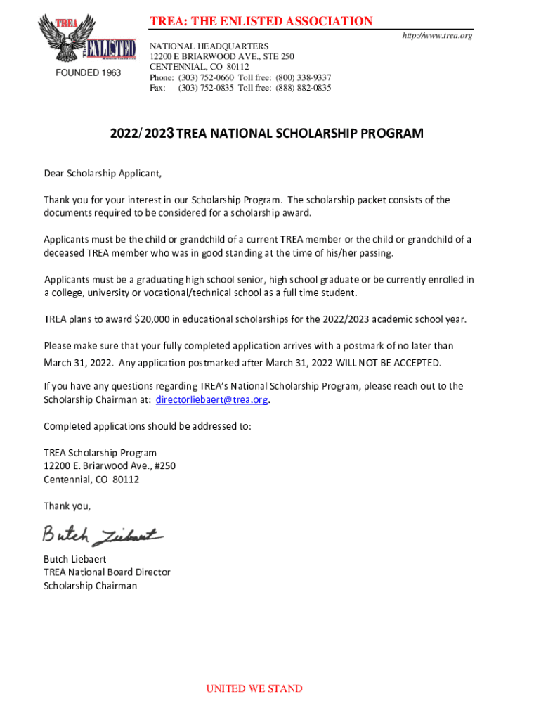 AREA: THE ENLISTED ASSOCIATION http://www.trea.orgFOUNDED 1963NATIONAL HEADQUARTERS 12200 E DRIFTWOOD AVE., STE 250 CENTENNIAL, CO 80112 Phone: (303) 7520660 Toll free: (800) 3389337 Fax: (303) 7520835