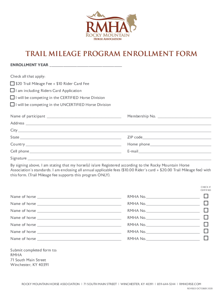 TRAIL MILEAGE PROGRAM RULES & ENROLLMENT WHO IS ELIGIBLE This program is available to all RMA members, adult and youth. You MUST be a current RMA member to participate in this program. If you are