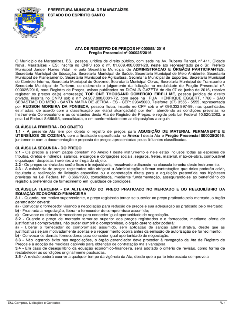 O Municipal de Maratazes, ES, person juridical DE direct public, com see