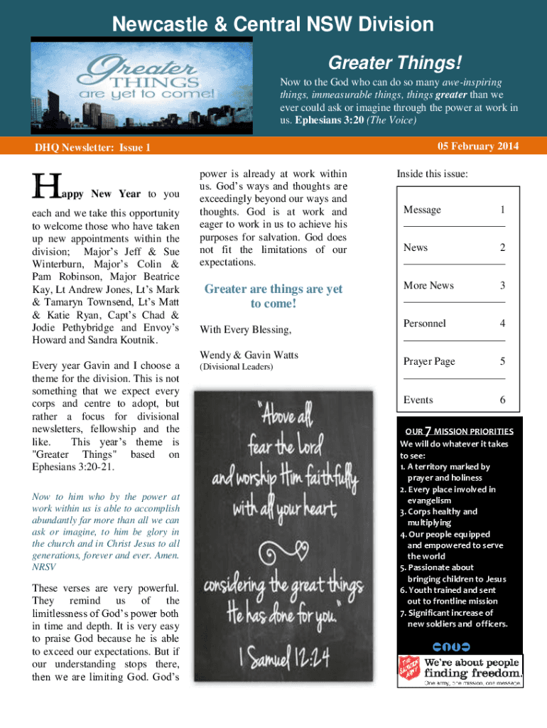 Newcastle & Central NSW Division Greater Things! Now to the God who can do so many awe-inspiring things, immeasurable things, things greater than we ever could ask or imagine through the power at