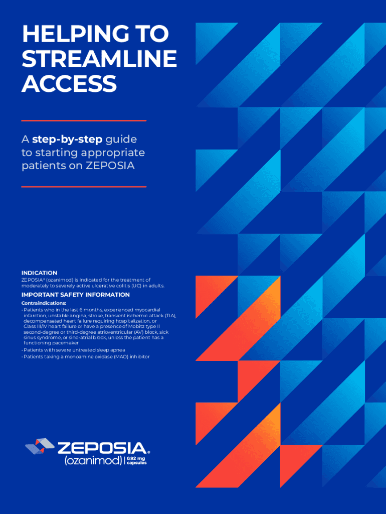 HELPING TO STREAMLINE ACCESS A stepsister guide to starting appropriate patients on ZEPOSIAINDICATION DEPOSIT (ozonized) is indicated for the treatment of moderately to severely active ulcerative