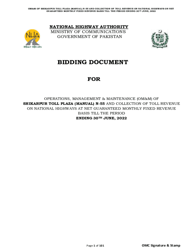 Get the free OM&M OF SHIKARPUR TOLL PLAZA (MANUAL) N-55 AND COLLECTION OF TOLL REVENUE ON NAT...