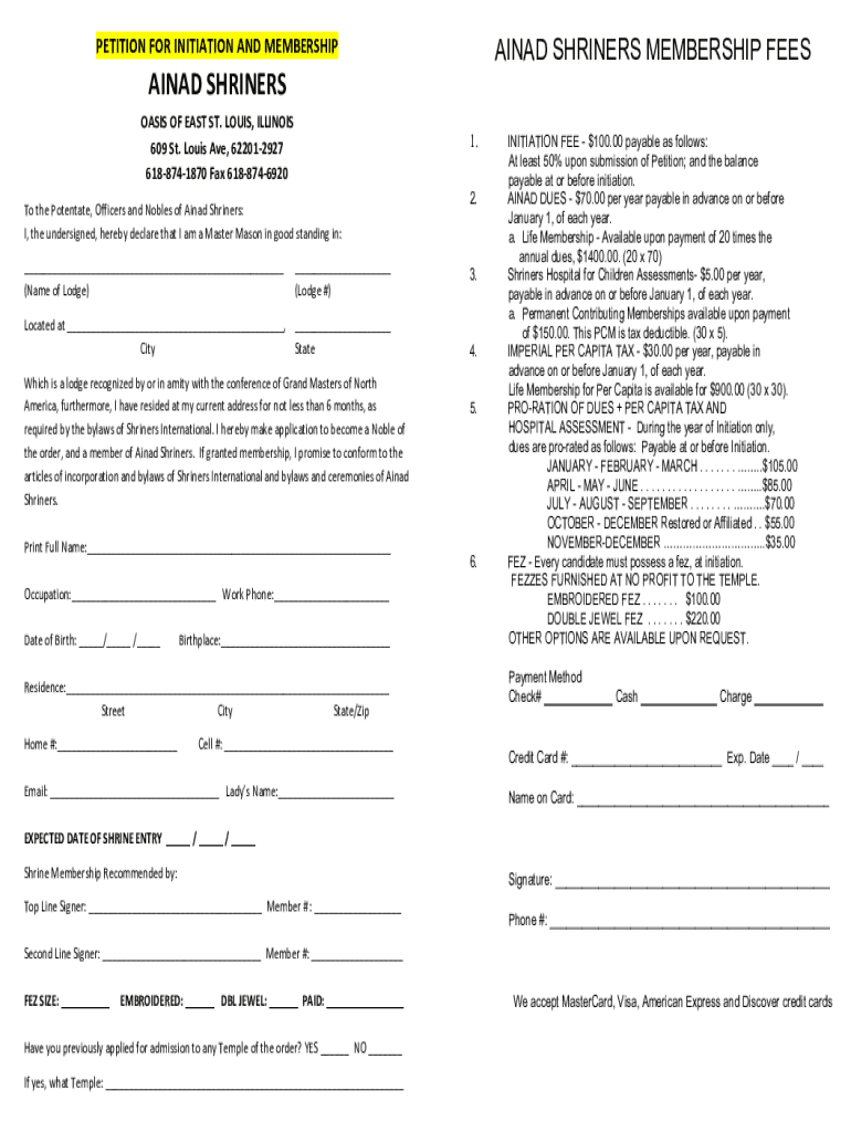 PETITION FOR INITIATION AND MEMBERSHIPAINAD SHRINES MEMBERSHIP FEESAINAD SHRINES