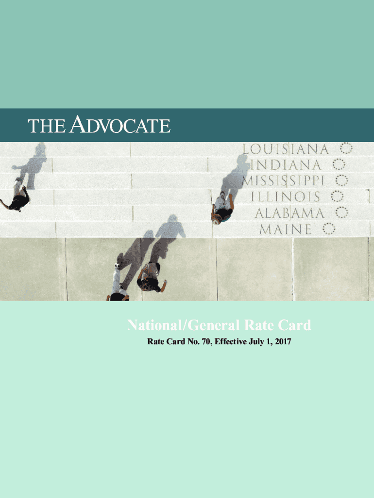 National/General Rate Card No. 70, Effective July 1, 2017THE 1. PersonnelTheAdvocate.com CEO..................................................... John Georges Publisher.....................................................
