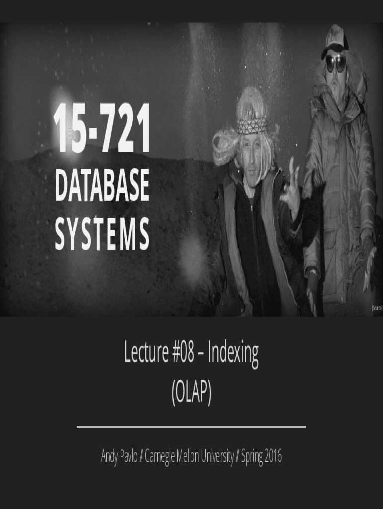 15721 DATABASE SST EM S[Source]Lecture #08 Indexing (LAP) Andy Pablo // Carnegie Mellon University // Spring 20162TO DAY S AG E N DA Background Projection/Columnar Indexes (MySQL) Bitmap Indexes Project