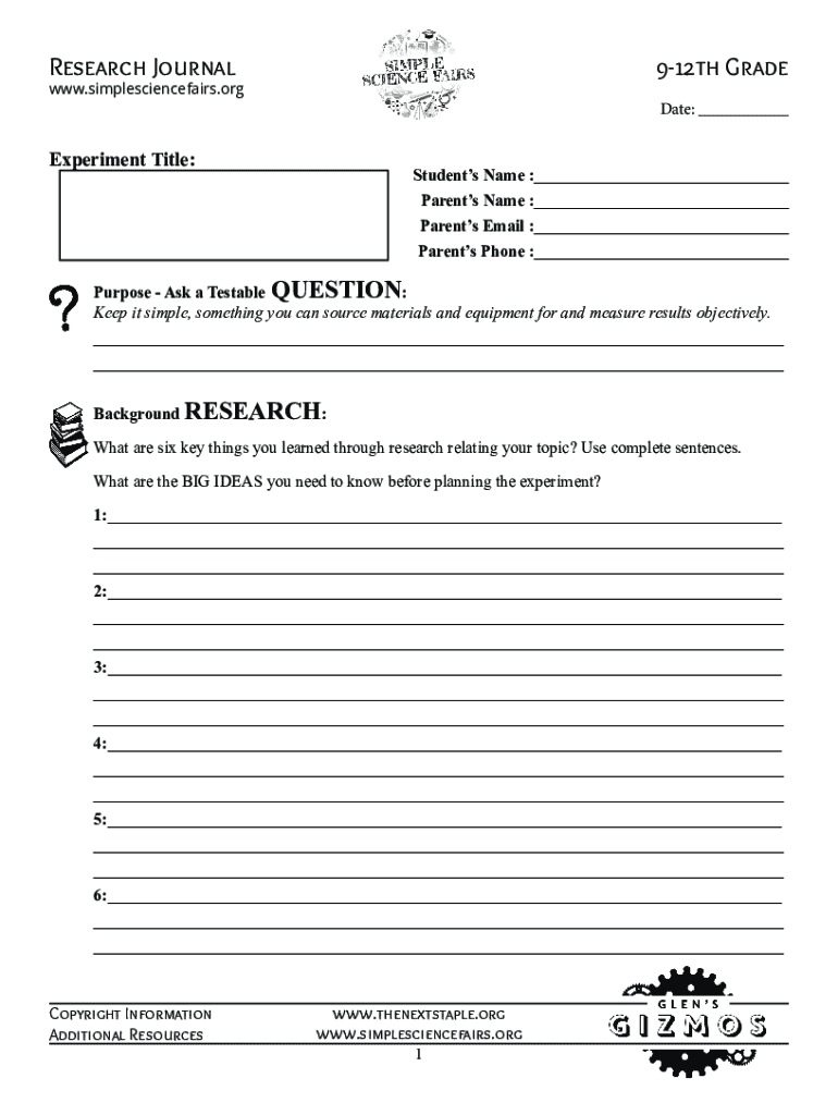 Research Journal912th Grade.simplesciencefairs.ornate: ___Experiment Title:Students Name :___