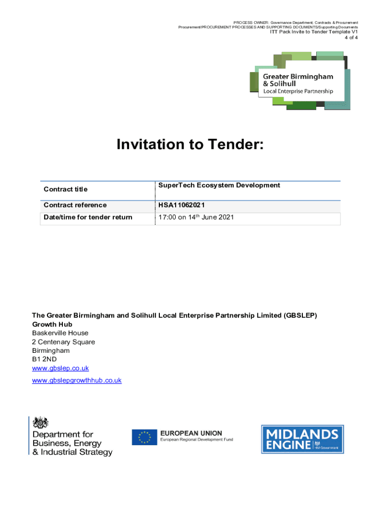PROCESS OWNER: Governance Department; Contracts & Procurement/PROCUREMENT PROCESSES AND SUPPORTING DOCUMENTS/Supporting Documents ITT Pack Invite to Tender Template V1 4 of 4Invitation to Tender: