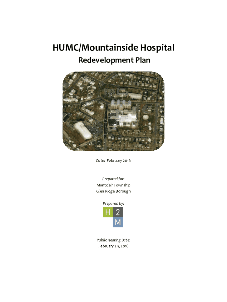 HUME/Mountainside Hospital Redevelopment Mandate: February 2016Prepared for: Montclair Township Glen Ridge Borough Prepared by:Public Hearing Date: February 29, 2016(Please leave blank for double-sided