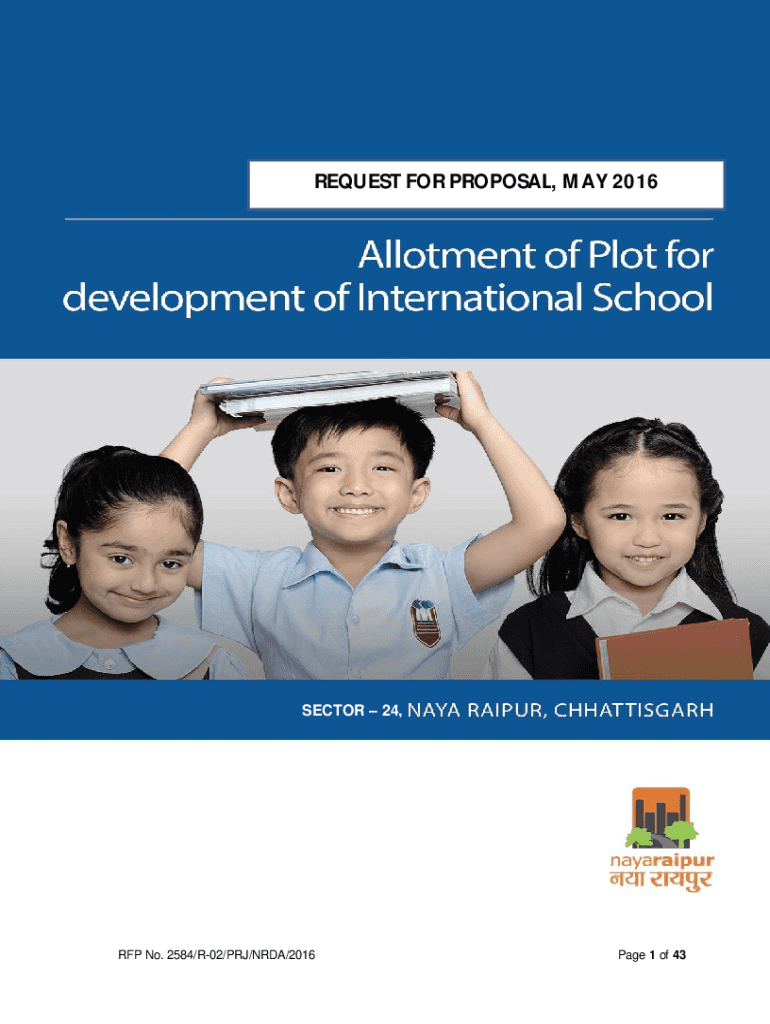 Request for Proposal, Allotment of Plot for International School in Sector24, NASA RaipurTender No. 4213/R38/PRO/NRA/2015REQUEST FOR PROPOSAL, MAY 2016Allotment of Plot for 100 Bedded HospitalsSECTOR