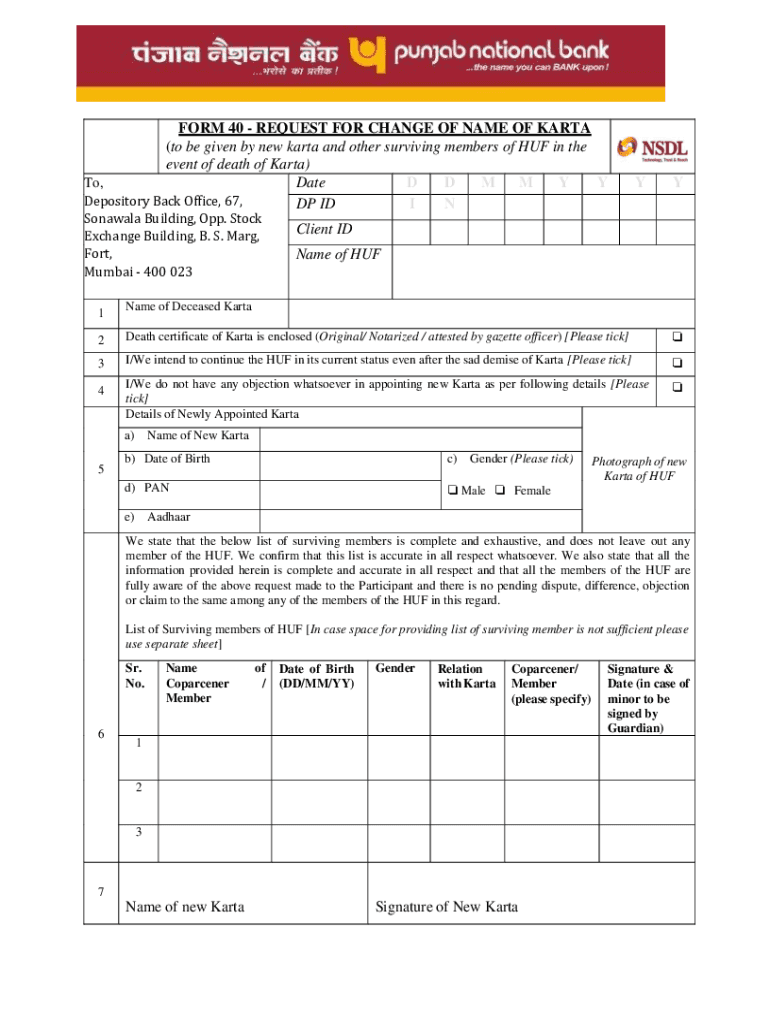 Get the free FORM 40 - REQUEST FOR CHANGE OF NAME OF KARTA (to be ...