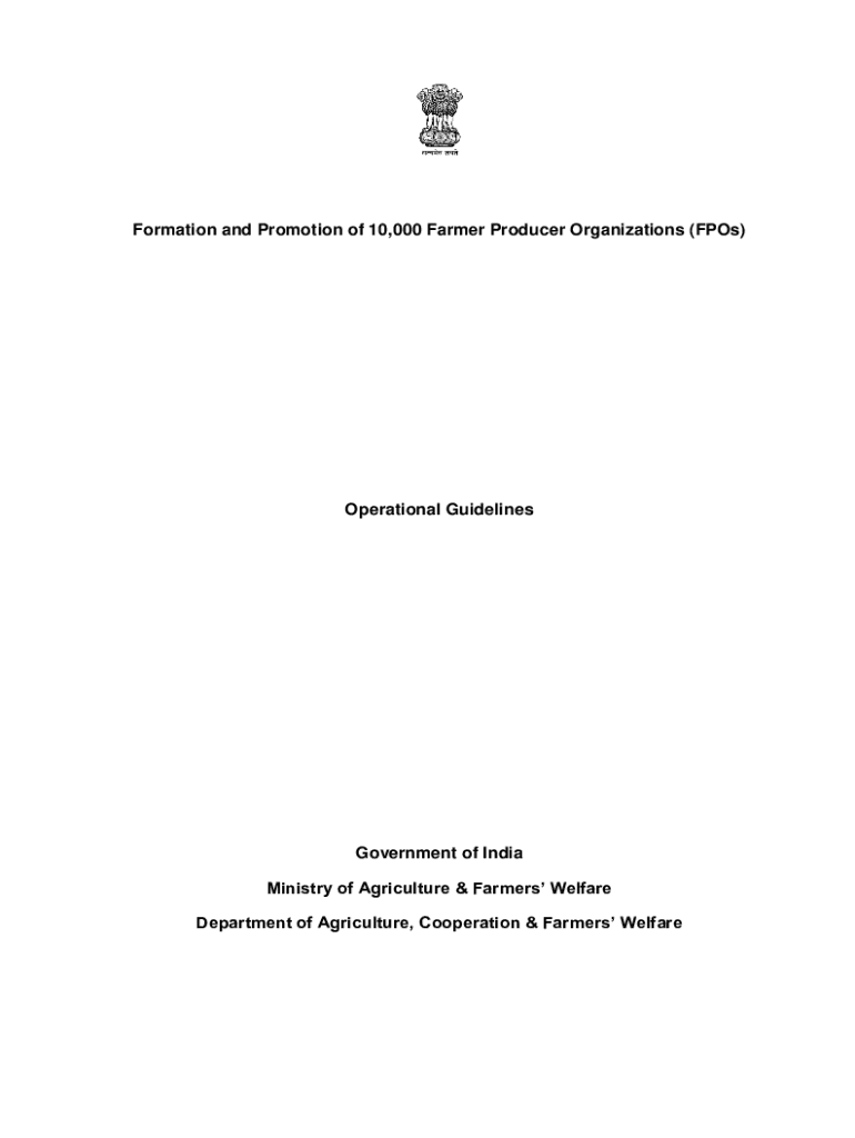 Formation and Promotion of 10,000 Farmer Producer Organizations (FPO's)Operational GuidelinesGovernment of India Ministry of Agriculture & Farmers Welfare Department of Agriculture, Cooperation &