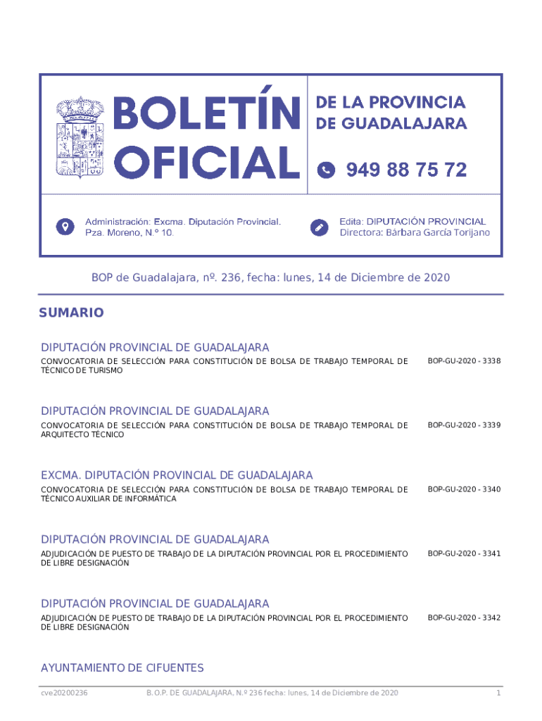 Get the free Boletn Oficial de la Provincia de Guadalajara nm. 236 de ...