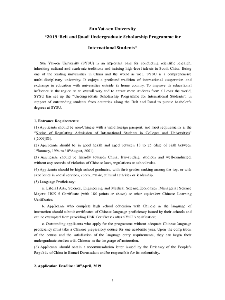 Sun Eaten University 2019 Belt and Road Undergraduate Scholarship Program for International Students Sun Eaten University (SY SU) is an important base for conducting scientific research, inheriting