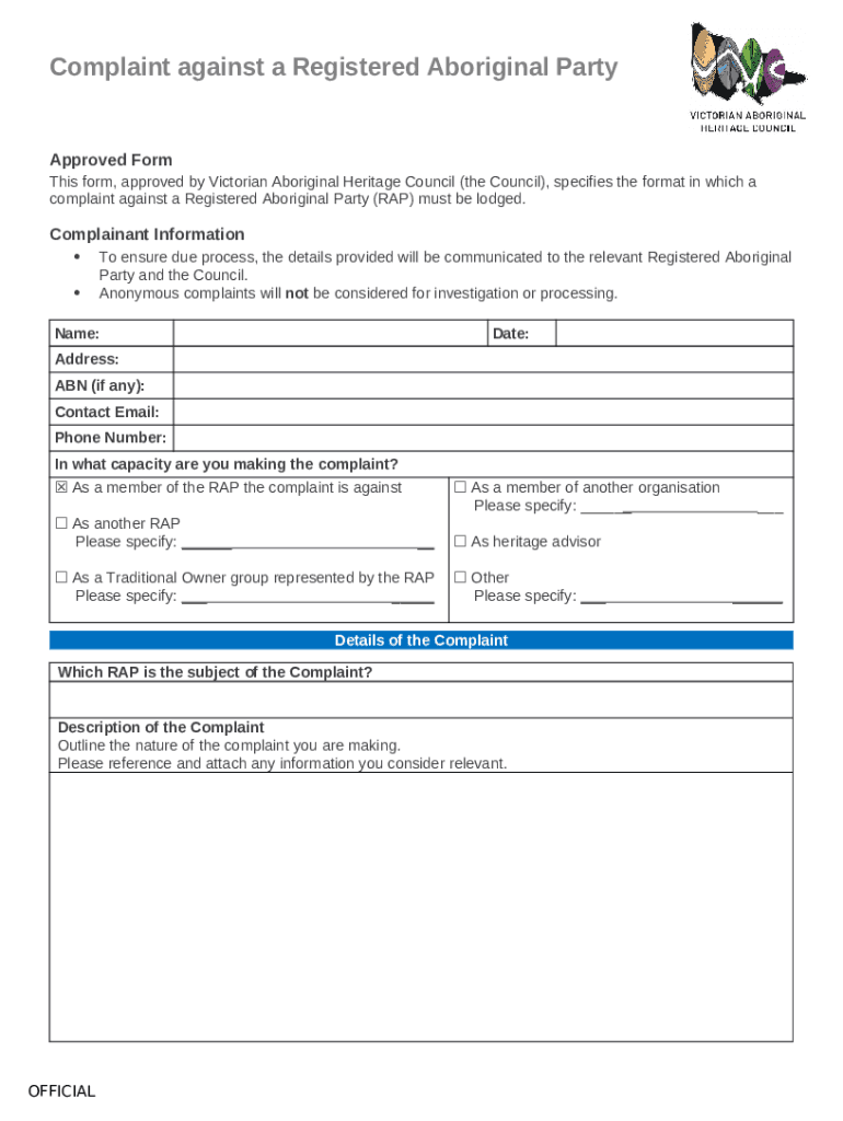 Approved - Aboriginal Cultural Heritage Land ... template instructions
