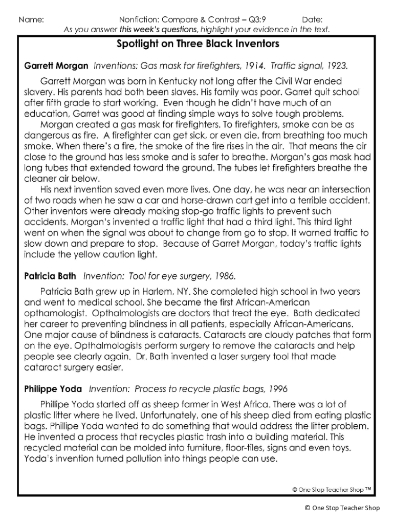 Get the free Name: Nonfiction: Compare & Contrast Q3:8 Date