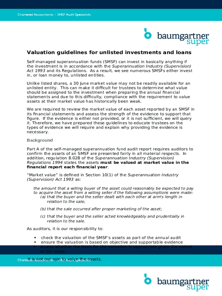 Frequently asked questions about the form Valuation guidelines for self-managed super funds