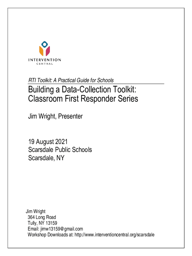 RTI Toolkit: A Practical Guide for SchoolsBuilding a DataCollection Toolkit: Classroom First Responder Series Jim Wright, Presenter 19 August 2021 Scarsdale Public Schools Scarsdale, NY Jim Wright