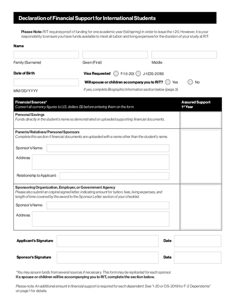 Request an I20 or DS2019 Form Instructions U.S. government regulations require you to demonstrate that you have sufficient financial resources to meet the costs of tuition, fees, supplies, and living