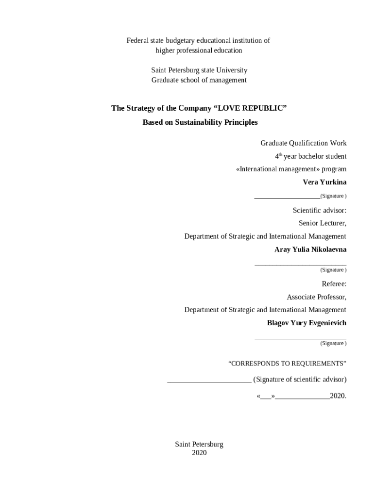Instructions for the form SWOT analysis for Love Republic by sustainability - dspace spbu