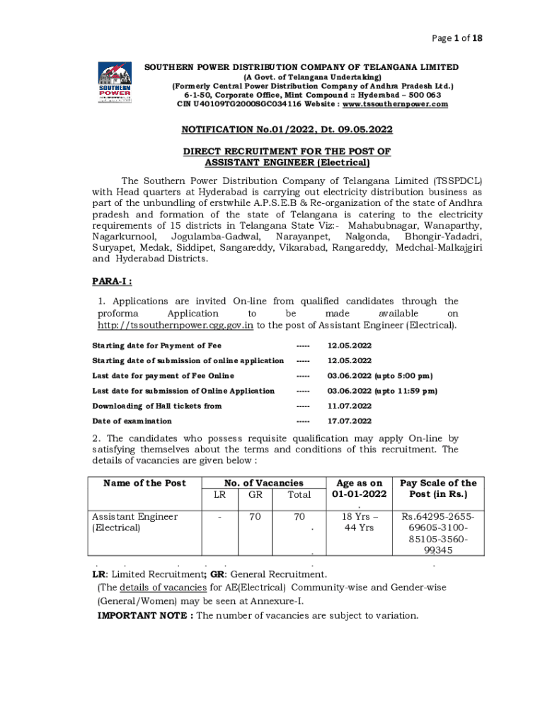 Page 1 of 18 SOUTHERN POWER DISTRIBUTION COMPANY OF TELANGANA LIMITED (A Govt. of Telangana Undertaking) (Formerly Central Power Distribution Company of Andhra Pradesh Ltd.) 6150, Corporate Office,
