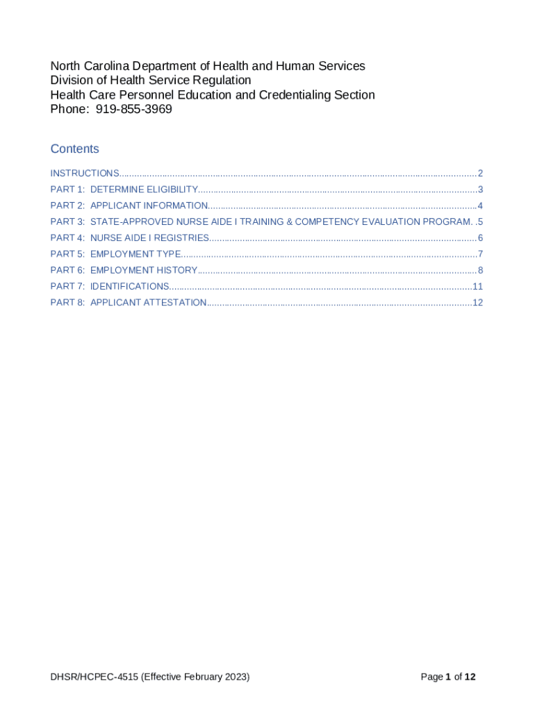 Instructions for the form Welcome Nurse Aide Test Takers in North Carolina!