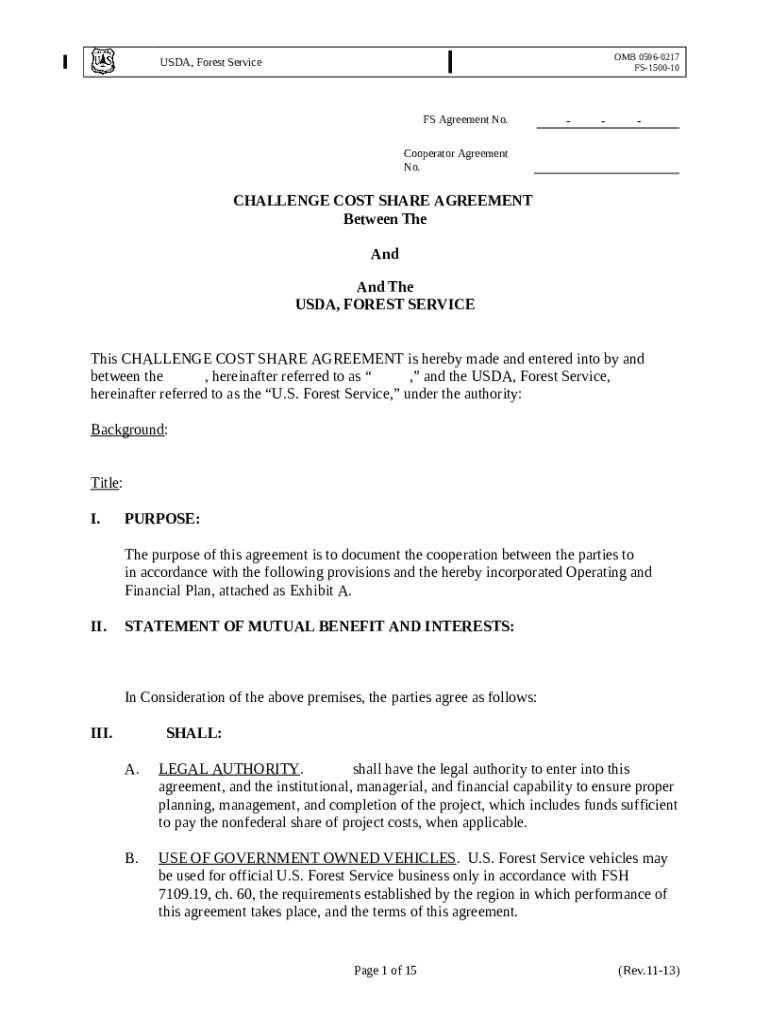 Instructions for the NON FUNDED CHALLENGE COST SHARE AGREEMENT ... form