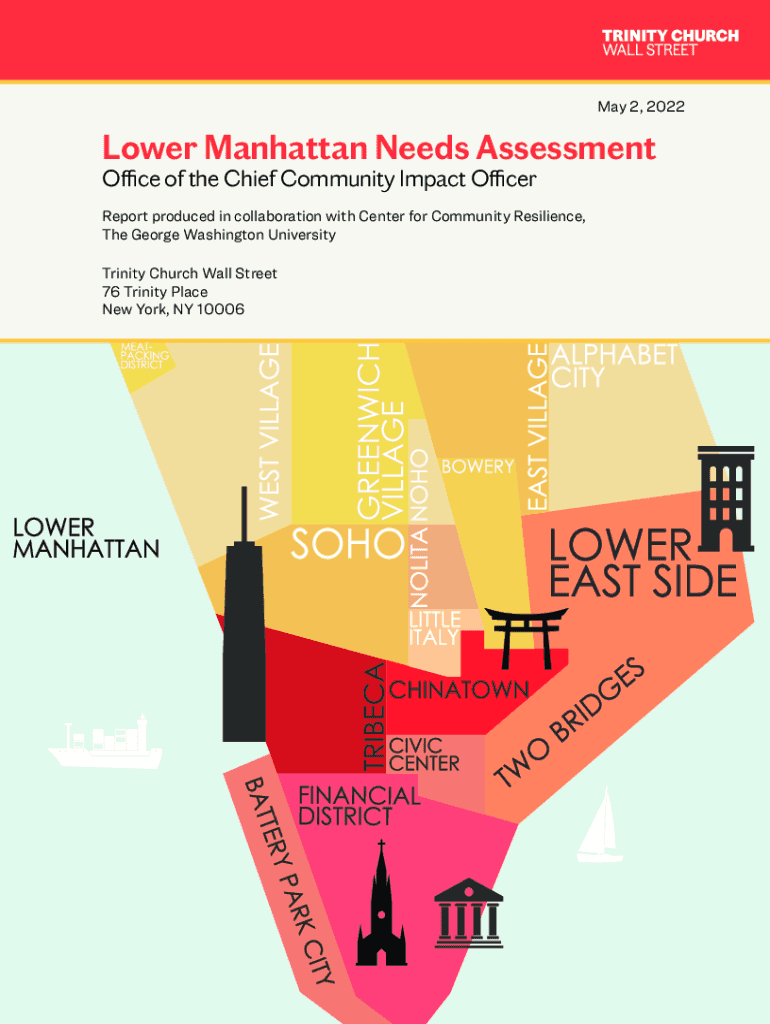 May 2, 2022Lower Manhattan Needs Assessment Office of the Chief Community Impact OfficerReport produced in collaboration with Center for Community Resilience, The George Washington University Trinity
