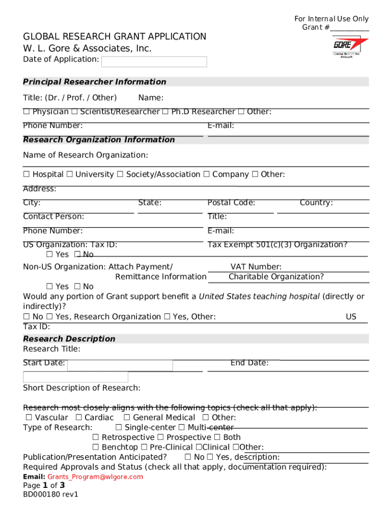 Instructions for the Global Research Grant - Application - Gore Medical form