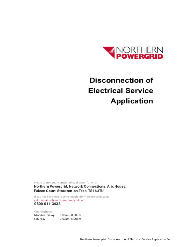 ApplicationPlease submit your completed application form to:Northern Power grid, Network Connections, Alex House,