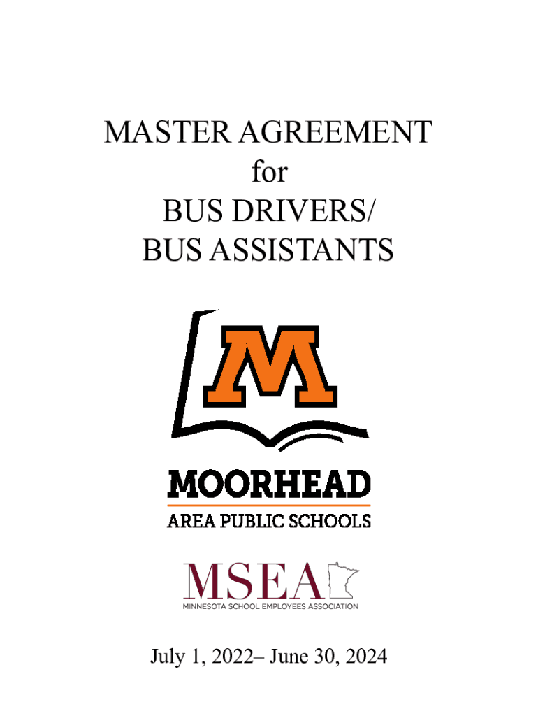 MASTER AGREEMENT for BUS DRIVERS/ BUS ASSISTANTS July 1, 2022, June 30, 2024Table of Contents ARTICLEPAGEI. Purpose3II. Recognition of Exclusive Representative3III. Definitions3IV. School Board Rights4V.